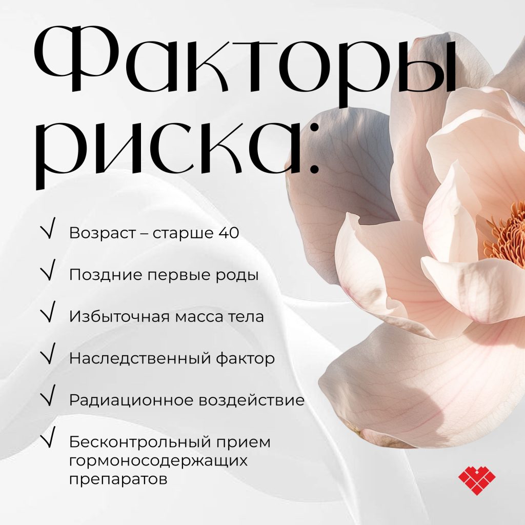 Карточка № 1: Факторы риска: Возраст – старше 40 Поздние первые роды Избыточная масса тела Наследственный фактор Радиационное воздействие Бесконтрольный прием гормоносодержащих препаратов
