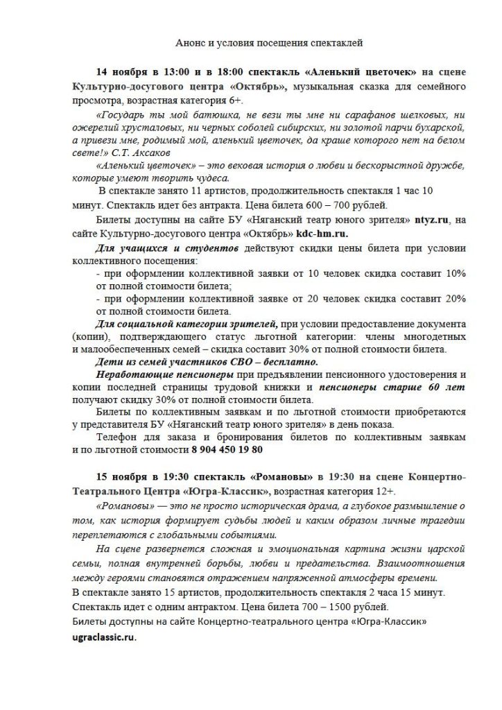 Билеты по коллективным заявкам и по льготной стоимости приобретаются